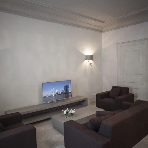 APARTMENT ROTTERDAM CENTER: WESTZEEDIJK 98The recently restored apartments on the corner of Koningin Emmaplein are located on the most beautiful part of the Westzeedijk, in the middle of the Scheepvaartkwartier. Full service apartments in a historic building, while retaining the authentic details. Enter through the special murals in the entrance and the impressive staircase with an authentic stained glass skylight. The short stay apartments in Rotterdam center are a short distance from the picturesque Veerhaven on the one hand and the relaxing Park at the Euromast on the other. Enjoy luxury and comfort with our personal service, for your all-inclusive business stay in the port and trading city. | APARTMENT WITH AMAZING BAY WINDOW AND EXTRA BEDROOMThe expat apartments in Rotterdam center have high classic windows and special ornaments on the high ceilings. Naturally, the kitchen is fully luxurious and comfortably furnished and there is professional equipment to relax after a long day at work. Thanks to free wired and WiFi internet, you have access to all important facilities. The full service apartments in the center of Rotterdam are conveniently equipped with everything and therefore offer the ideal base for your business stay. In addition, your service manager is available 7 days a week. |